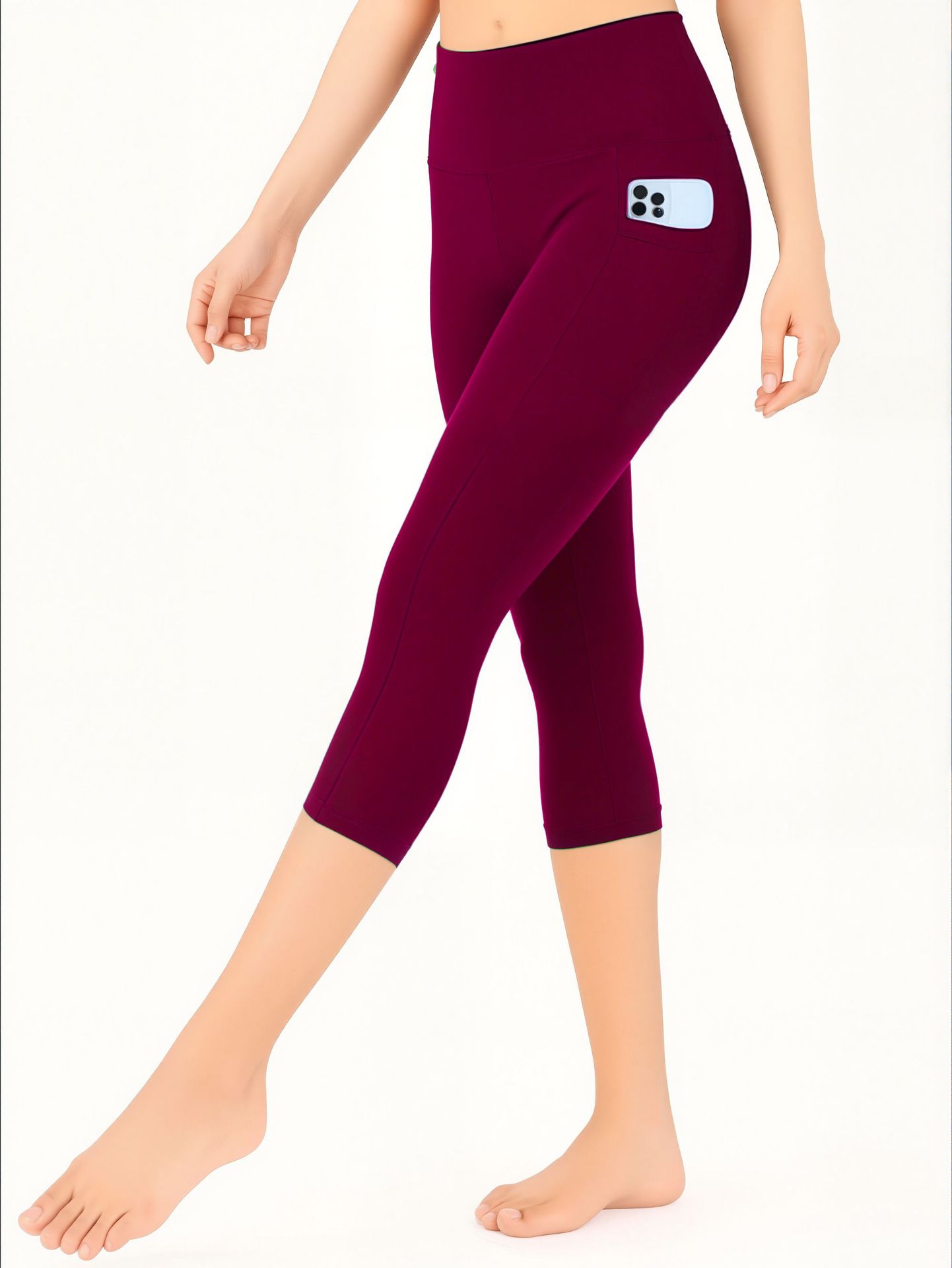 Cross-border European and American Pocket Cropped Yoga Pants Women's Spring and Summer High Waist Belly Tight Outer Wear Cropped Leggings